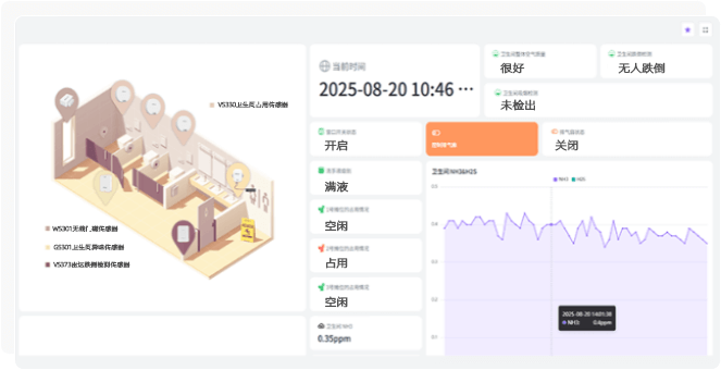 通过实时环境与占用情况洞察,全面提升卫生安全与运营效率。自定义仪表盘,实现空气质量监测、设施状态追踪及自动预警——凭借无缝数据集成与智能管理,持续营造最佳洗手间环境。