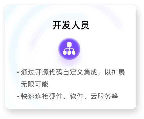 借助 Beaver IoT 的开源框架,开发者可轻松接入各类软件、 设备与服务,实现无缝互联与功能扩展,快速构建灵活、高效的定制化物联网方案。