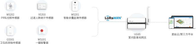 WS202 PIR&光照传感器安装于每个厕位顶部,用于检测厕位是否有人占用,检测数据对接到智慧厕所引导平台,通过平台可以查看每个厕位占用情况。