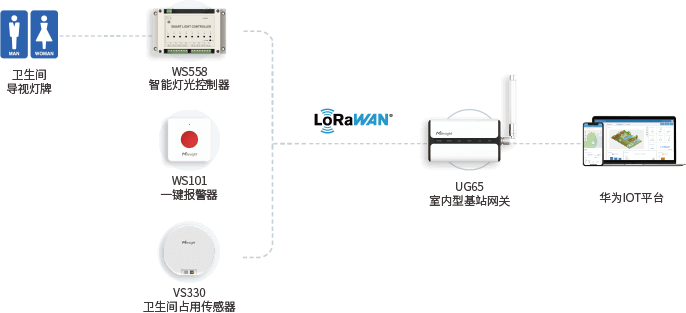 华为武研所总占地面积1200亩,共计10栋大楼,员工人数超1.4万人,卫生间使用需求大,存在诸多使用痛点,影响员工体验及上班效率。为了给员工提供便捷高效、人性化的上班环境,武研所通过引入星纵物联LoRaWAN®智能物联网设备,对202个卫生间进行智能化改造。