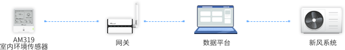 系统根据实时数据进行分析判断,当空气质量参数超阈值时,下发指令自动调节空调的通风量。高峰时段人流多,监测到空气质量下降,自动增加通风量,当人流逐渐减少,空气质量上升,则减少通风量。
