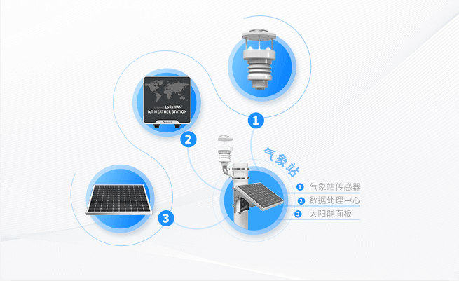 星纵物联气象站由多合一气象环境传感器、数据处理中心、太阳能面板组成,集气象数据采集、存储、传输和管理于一体。