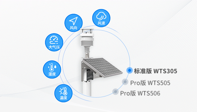 星纵物联气象站可选标准版和Pro版本,可同时监测风速、风向、温度、湿度、大气压、雨量(仅WTS506支持)六大气象要素,用户可根据场景需求自由选择。