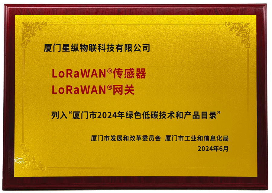 星纵物联LoRaWAN®传感器和网关荣列厦门市2024年绿色低碳技术和产品目录