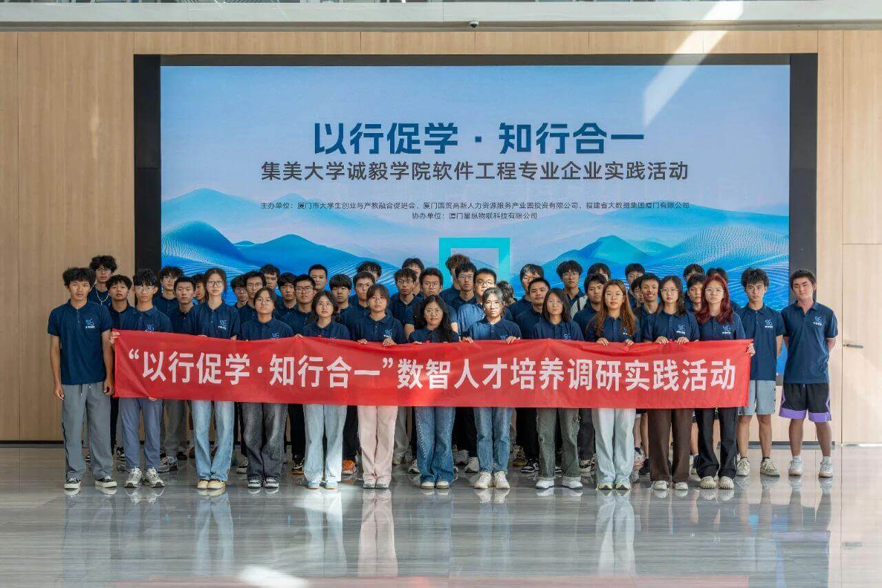 10月30日,由厦门市大学生创业与产教融合促进会、厦门国贸高新人力资源服务产业园投资有限公司、福建省大数据集团厦门有限公司主办,新利体育官网注册入口 协办的“以行促学·知行合一”厦门集美大学诚毅学院软件工程专业企业实践活动在星纵大楼圆满举行。