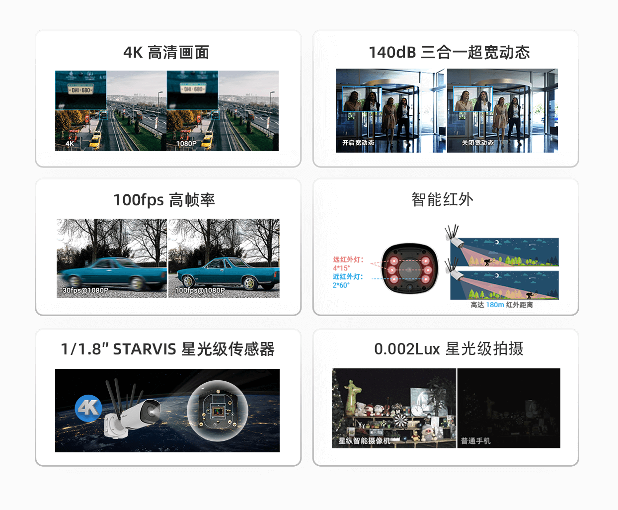 星纵智能5G AIoT高清网络摄像机支持传输高达8K的超高清视频,同时支持高速上传和下载超高分辨率视频。
